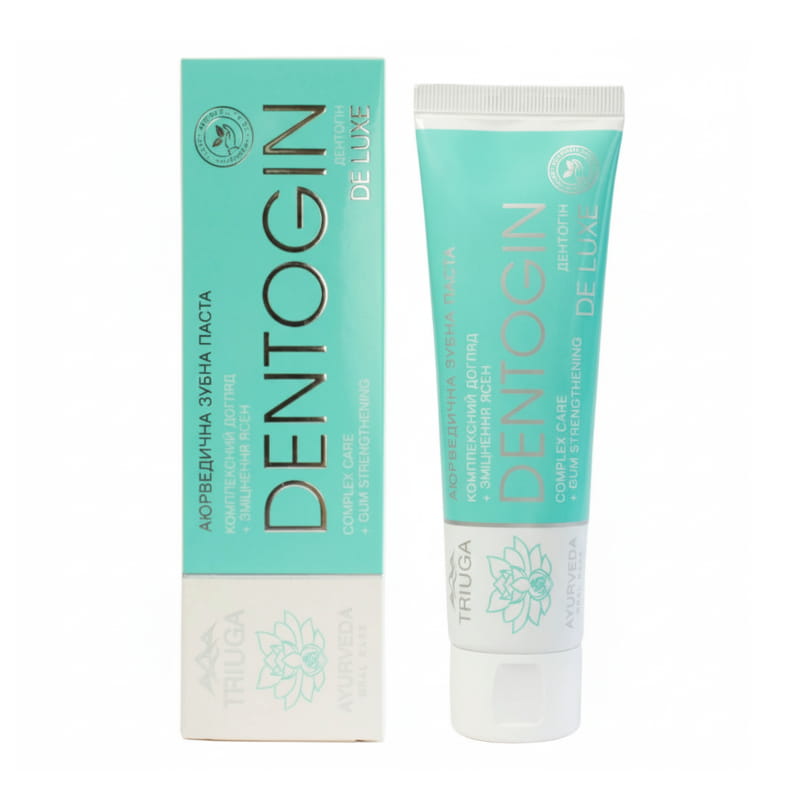 Dentongin Deluxe to ajurwedyjska pasta do codziennej pielęgnacji jamy ustnej, opracowana w oparciu o kompleks AYURVEDA MIX z ekstraktami z neem, miswaku, aloesu, kurkumy, nagietka i bazylii.