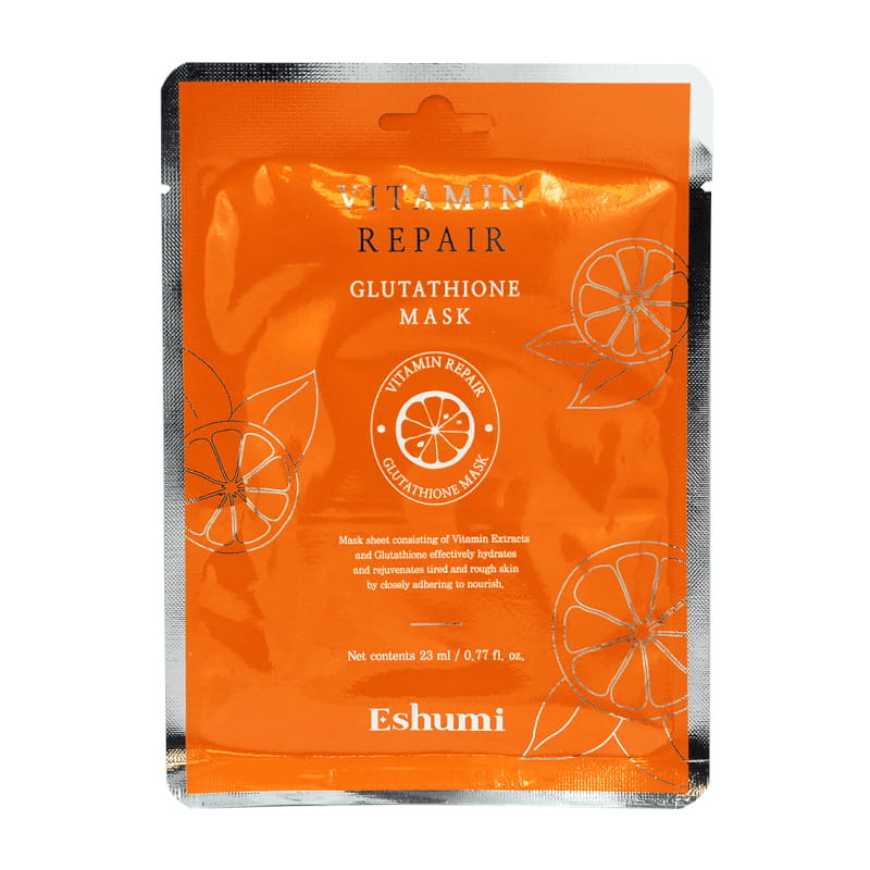 Eshumi Vitamin Repair to maseczka do twarzy przeznaczona do pielęgnacji skóry zmęczonej, matowej i pozbawionej blasku. Zawiera ekstrakt z rokitnika, glutathion, panthenol oraz kompleks witamin, które wspierają poprawę kolorytu i wygładzenie cery. Maska przyczynia się do uzyskania świeższego, jaśniejszego i bardziej promiennego wyglądu skóry.