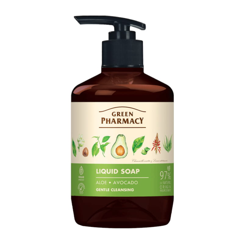 Mydło w płynie Green Pharmacy z aloesem i olejem z awokado zapewnia łagodne, ale skuteczne oczyszczenie skóry, jednocześnie ją pielęgnując. Aloes łagodzi i nawilża, wspierając naturalną barierę ochronną skóry, natomiast olej z awokado odżywia i zmiękcza. Idealne do codziennego użytku, nie powoduje uczucia ściągnięcia, pozostawiając skórę gładką i świeżą.
